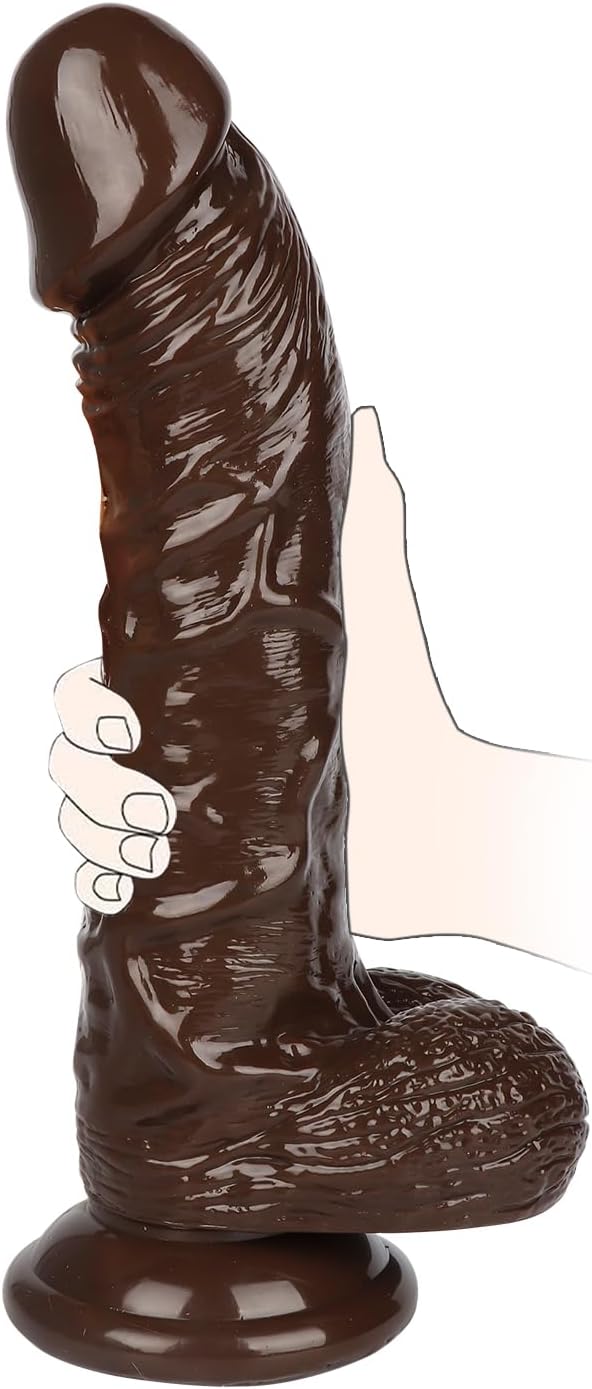 8 Inch Realistic Huge Thick Dildo with Strong Flared Suction Cup Base for Hands-Free Play, G-spot Big Realistic Dildo Sex Toys for Women and Men(Brown)